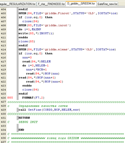 5) Когда визуально сетка достигнет с точки зрения исследователя, удовлетворительного вида, необходимо провести перерасчет в Sigma. Перед этим необходимо подключить модуль с функцией GetFine и осуществить ее вызов в следующем месте модуля GRIDDM: