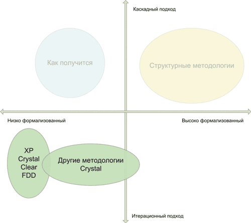 Crystal — семейство методологий, определяющих необходимую степень формализации процесса разработки в зависимости от количества участников и критичности задач.