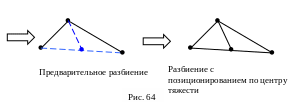 Остановимся подробнее на самой реализации процедуры разбиения. В оригинальном описании алгоритма выбирается середина сегмента, в качестве нового узла. Положение узла при этом остается неизменным, что кажется не совсем верным, поэтому пользователю предоставлена возможность использования процедуры позиционирования узлов. При этом характер сетки изменяется в лучшую сторону.
