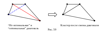 Данный алгоритм выполняет смену «не оптимальной» диагонали на «оптимальную» внутри одного кластера, образованного смежными элементами. «Оптимальной» диагональю считается диагональ меньшей длины, «не оптимальной» другая (большая по длине) диагональ кластера.