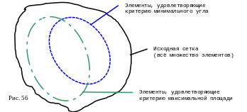 Вторичные критерии аналогичны первичным, отличие их заключается в том, что используются они на заключительном этапе, для ограничения множества, образованного в результате работы алгоритма. На данном этапе отсеиваются создаваемые элементы, заведомо ухудшающие качество сетки4.