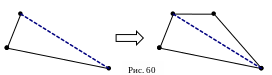 В базовые действия была также выведена процедура смены диагоналей, поскольку неявно сам алгоритм Рапперта производит манипуляции, являющиеся ничем иным как операцией смены диагонали. Для данной процедуры определен единственный критерий для создаваемого сменой диагонали кластера – минимальный угол.