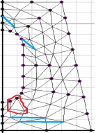 Применение алгоритма разбиения треугольника не привело к какому-либо изменению сетки. Улучшения сетки КЭ произошли после применения следующей последовательности алгоритмов: