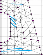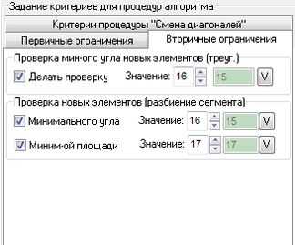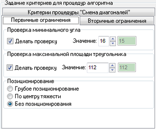Видно, что алгоритм разбиения сегмента (так же как и алгоритм смены диагоналей) без позиционирования более эффективен по сравнению со случаем применения позиционирования (в этом случае получается менее качественная сетка). В исходной сетке имеется 96 конечных элементов; в полученной без позиционирования – 110; с позиционированием по центру тяжести – 108; с грубым позиционированием – 138.