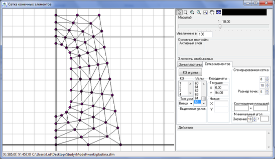 Сетка КЭ с закрепленными узлами сохранена как «вариант №1».