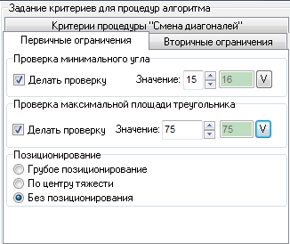 Применим к данному варианту алгоритм разбиения треугольника и алгоритм смены диагонали. Оба алгоритма будут применяться без позиционирования.