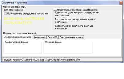 В системных настройках подпрограммы алгоритма Рапперта, при отключении «использовать стандартные настройки» появляется надпись желтого цвета «включены настройки пользователя». Желтый цвет не очень читабелен.