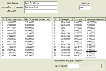 | После проведения параметрической оптимизации схемы lab4_5 из ЛР1 при λ=90 и заменим теоретические площади площадями стандартных элементов: lab4_5_90 m = 8,851 λ = 90 lab4_5_90_r_r m = 12 λ = 90 Расчет получившейся конструкции показал, что значения необходимых моментов инерции не превышают моменты инерции используемых стандартных элементов (труб). Максимальные перемещения узлов не превышают 0,52%, что подтверждает достоверность проведенного расчета. Масса конструкции увеличилась в 2,8 раза по сравнению с массой теоретической конструкции, спроектированной в ЛР1. Анализ эффективности работы стержней фермы