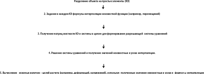 Специфика МКЭ наибольшим образом проявляется в первых четырёх этапах.