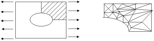 П ервый этап состоит в разделении тела на небольшие элементы простой формы, соприкасающиеся в точках, которые называются узлами. Разделение на элементы можно выполнить множеством разных способов, так как выбор размеров, формы и ориентации элементов целиком определяется представлениями инженера о том, как лучше всего решить задачу. Элементы плоского тела имеют обычно треугольную или четырехугольную форму, а элементы трехмерных тел - форму тетраэдров или гексаэдров. Те участки тела, для которых из физических соображений требуется получить более детальную информацию, разбиваются на большое число мелких элементов.
