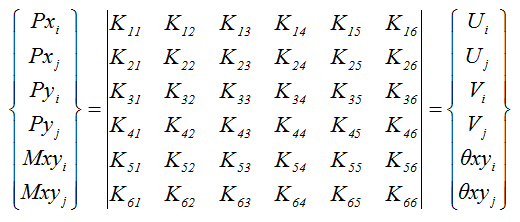 Сформировав матрицы жесткости отдельных элементов и состыковав их, получим матрицу жесткости всей системы К. Искомый вектор перемещений будет найден из решения уравнения P=KU.