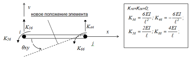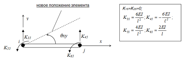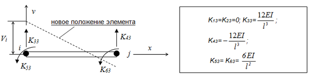 Поэтому при перемещении узла элемента балки в направлении оси Y на единицу возникнет не только силовая реакция, , но момент , что и характеризует жесткость элемента в выбранном направлении при заданных .