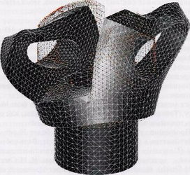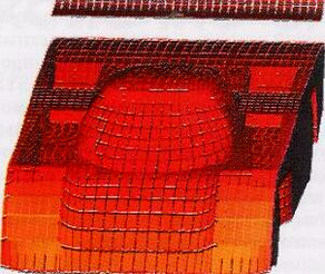 Интересный факт, что текст программы (в последней редакции от июля 1999 года) содержит 267 319 строк (более километра распечатки на рулонной бумаге с плотностью 12 строк на дюйм), из которых 117 132 строки — комментарии! Имеется: «Руководство пользователя по пост/ препроцессору», «Руководство пользователя «Механика», «Руководство пользователя «Теплодинамика» и т.д. Очень большие возможности программы проще проиллюстри­ровать в примерах пост/препроцессоров (рис. 1, 2).