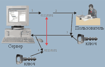 Пользователь зашифровывает полученное число секретным ключом и отправляет результат серверу.