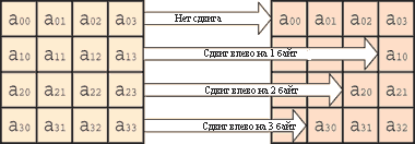 2. Побайтовый циклический сдвиг строк массива влево на различное число байт.