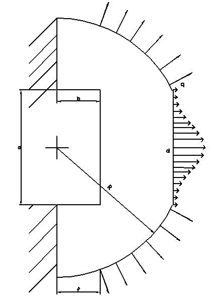 qраспределённая = ; =2000Н/см ; , где точка 0 находится в правой крайней точке пластины, а S – длина наклонной стороны. Нагрузка направлена от пластины.