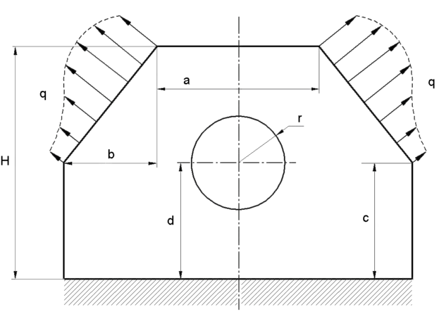 1. По верхней стороне в виде части окружности приложить погонную нагрузку постоянной интенсивности =2000Н/см