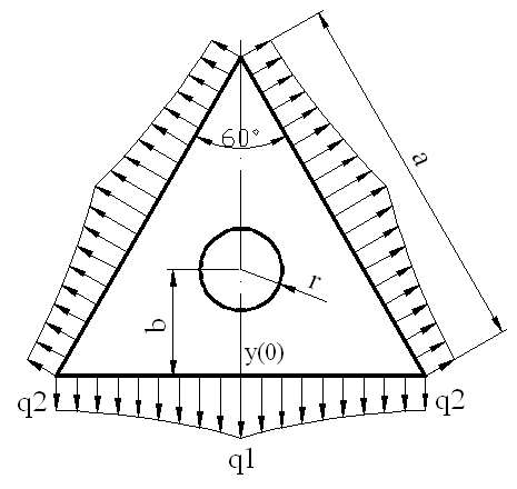 a = 90 см; b = 26 см; r =7.5 см; q1 = 729 Н/см; q2 = 216 Н/см;