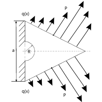 Заменить нижнюю наклонную сторону дугой окружности, проведенной через верхнюю и нижнюю точки этой наклонной стороны радиусом r=a из верхней точки пластины.