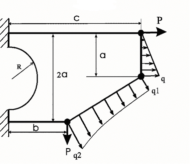 1. На верхнюю сторону в виде дуги окружности действует погонная нагрузка постоянной интенсивности, равной 2005Н/см.