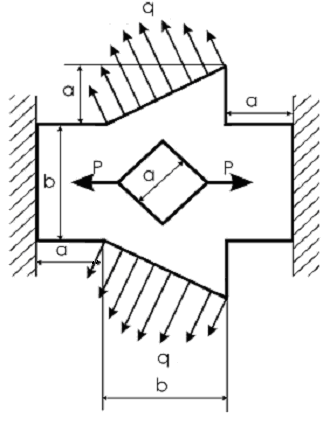 2. По наклонным сторонам действует распределёная нагрузка , где размерность для равна Н/см. При этом =1000.0, =– подобрать таким образом, чтобы синусоида образовала три четверти волны в конце наклонной стороны.