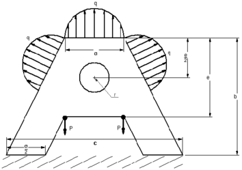 1. К верхней стороне в виде дуги окружности приложить нагрузку постоянной интенсивности