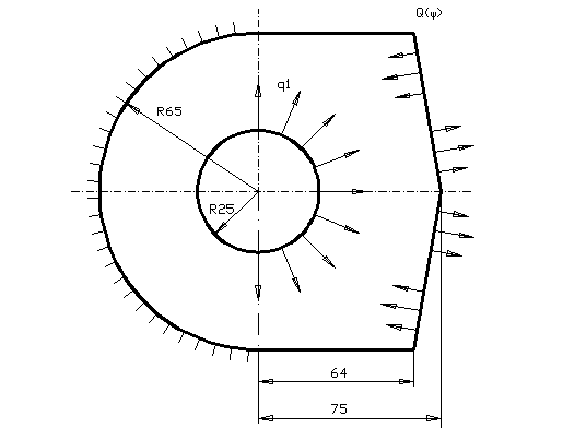 Правая половина отверстия нагружена равномерно распределенной нагрузкой