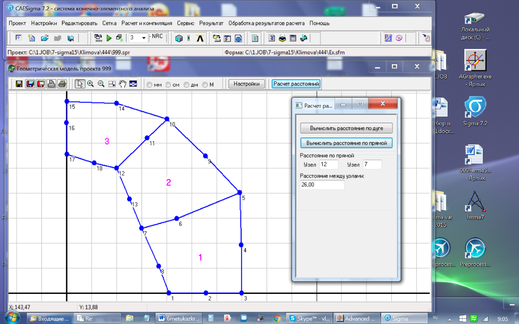 1. скриншот геометрической модели, разбитой на зоны, из подсистемы геометрического моделирования программы Sigma с доказательством установления в точке нуля функции основного узла зоны.