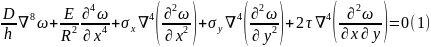 В качестве простейшего варианта решения примем, что изогнутая поверхность оболочки после выпучивания является осесимметричной, (опять гипотеза) т.е., что поперечные сечения остаются круговыми. Тогда будет зависеть только от Х и уравнение (2) примет вид: