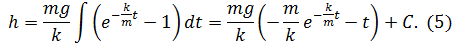 Формула (3) представляет собой закон изменения скорости с течением времени. Найдем закон изменения высоты