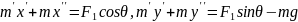Чтобы записать уравнение (5.2.7) в переменных x и у, заметим, что сила тяги и сила сопротивления действуют вдоль оси ракеты. Если мы обозначим эту часть результирующей силы F через F1 , то