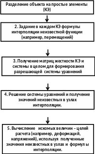 Специфика МКЭ наибольшим образом проявляется в первых четырёх этапах.