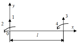 бозначим длину конечного элемента через l. (На рисунке положительные направления сил 1 и 3 и моментов 2 и 4).