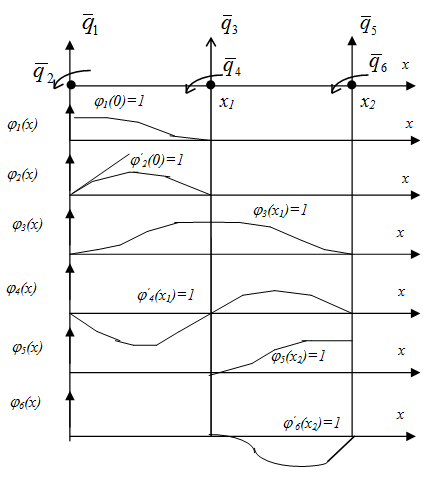 так называемые одномерные функции формы (в теории аппроксимации - функции Эрмита), удовлетворяющие следующим свойствам: