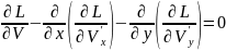 Имеются две независимые переменные – координаты xи у, переменной состояния является электрический потенциал Vи его частные производные, составляющие напряженности электрического поля: