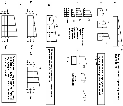 Внешние нагрузки, приложенные к подструктурам, могут отличаться. Для подструктур, принадлежащих к одному типу, достаточно построить только одну типовую подструктуру. С этой целью при одной матрице жесткости формируется несколько векторов узловых усилий, соответствующих отличным друг от друга нагрузкам, приложенным к подструктурам одного типа. Из типовой подструктуры может быть получено несколько типовых суперэлементов, различающихся количеством граничных узловых точек.