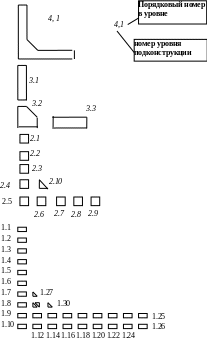На каждом уровне подконструкциям присваиваются порядковые номера.