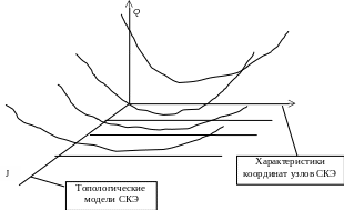 Особенностью этой оптимизационной задачи является то, что функция Q не имеет непрерывной области существования, а определена в бесконечном множестве J топологических моделей СКЭ, При этом для каждой топологической модели QJ имеет, по крайней мере, один локальный минимум, являясь функцией координат узлов СКЭ.