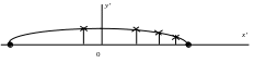 Средняя точка 0, соединяющей линии принимается за начало локальной оси y’ . Базовый параболический элемент в координатной системе x’Oy’ строится единственным образом и имеет симметричную форму. Разделение базового параболического элемента на несколько отрезков выполняют разбивкой соединяющей линии и проведением перпендикуляров к оси Оx’, которые пересекают параболу в запроектированных точках. Неравномерную разбивку производят аналогично. Если необходимо точно определить положение промежуточных узлов, используют численное интегрирование.