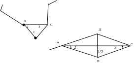 Угол 1 делится на две равные части, а длина стороны ВД выбирается равной среднему арифметическому длин сторон АВ и ВС, умноженному на числовой коэффициент, который характеризует необходимую степень сгущения или разрежения сетки внутри базовой области.