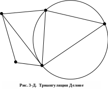 На рис. 4-Д показан пример триангуляции Делоне для набора большого числа точек.