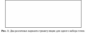 Ранее, при рассмотрении методов предварительного нанесения узлов сетки был приведён пример различных вариантов триангуляции. Повторим этот рисунок, временно игнорируя проведённые на нём окружности.