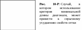 Первый, возможно самый очевидный критерий — это длина диагонали (см. рис. 10-Р). Действительно, зрительно, диагональ ac кажется гораздо более удачной диагонали bd для минимального угла двух треугольников и поменяв эту диагональ мы, вероятно, добьемся улучшения свойств сетки. У этого способа, к тому же, есть преимущества: он не трудоемок в вычислительном плане и его просто запрограммировать. Но есть у него и критический недостаток — он неадекватен. На рисунке 10-Р показан случай, где использование критерия минимальной длины диагонали может привести к серьезному ухудшению свойств сетки.