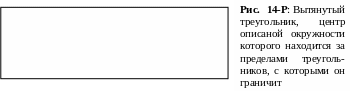 Второй недочет заключается в том, что не учитывается возможность существования таких треугольников, у которых центр описанной вокруг них окружности находится далеко от самого треугольника. В таком случае, при делении треугольников с наименьшим углом в первую очередь, возникает следующая ситуация (см. рис. 14-Р). При первом разделении такого треугольника добавляется точка в центр описанной вокруг него окружности, но так как точка находится далеко от самого треугольника, то сам треугольник не претерпевает никаких изменений и он по-прежнему остается первым в очереди для разбиения.