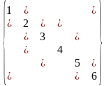Чтобы подчеркнуть соответствие i-го диагонального элемента матрицы с узлом i ее графа, мы указываем этот элемент как i в кружочке. Внедиагональные элементы обозначены символом *.