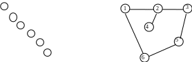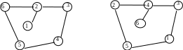 Ниже приведен простой пример, иллюстрирующий уменьшение ширины ленты матрицы путем перенумерования вершин соответствующего графа. После изменения номеров вершин графа , который соответствует матрице В, получается граф , которому соответствует матрица . В матрицах В и ширина ленты равна соответственно 5 и 3.