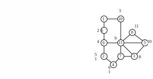 Таким образом, кандидатами для нумерации служат вершины 6 и 10. Если следующей пронумеровать вершину 6, то в множество В будет включена вершина 9, а если взять вершину 10, то к мно­жеству В тоже присоединится одна вершина 11. Возникшая неопре­деленность разрешается произвольным образом, и мы выбираем ту возможность, когда вершина 6 нумеруется в качестве второй. Переопределяя теперь множества А , В и С, получаем