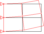 1. Изображение деформированного состояния. В результатах расчета обычно содержатся значения узловых перемещений в направлении общей системы координат. При графической интерпретации на схему КЭМ накладывается рисунок ее деформированного состояния для каждого случая нагружения. Масштаб перемещения выбирается отличным от масштаба схемы КЭМ. Для наглядности рисунок выделяется цветом или другим типом линий.