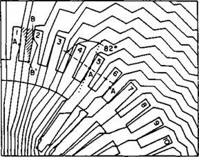 Разрывы линий поля имеют физический смысл лишь на границах раздела двух различных сред (точка В); во всех остальных случаях они являются результатом ошибки метода.