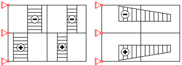 3. Построение эпюр. Например, величины напряжения откладываются в заданном масштабе от линии, проведен-ной через центры элементов, указывается знак напряжения. Для большей наглядности эпюры заштриховываются, либо закрашиваются.